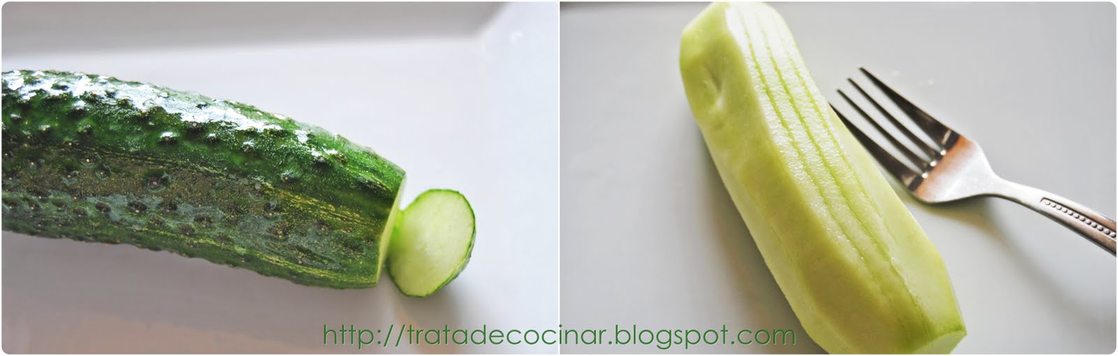 - Con ayuda de un tenedor hacer unas marcas longitudinales por toda la superficie, así conseguiremos que los pepinos absorvan mejor la vinagreta.