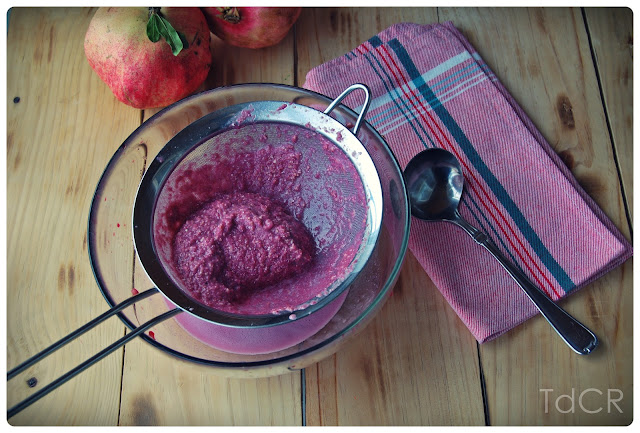 Hace tiempo que había visto esta receta en Gastronomía & Cía en donde nos cuentas que esta melaza o jarabe de granada se utiliza mucho en la cocina árabe para preparar Muhammara, una crema de pimientos, nueces y especias así como Fesenjan, un plato en el que se incluye carne, generalmente aves.