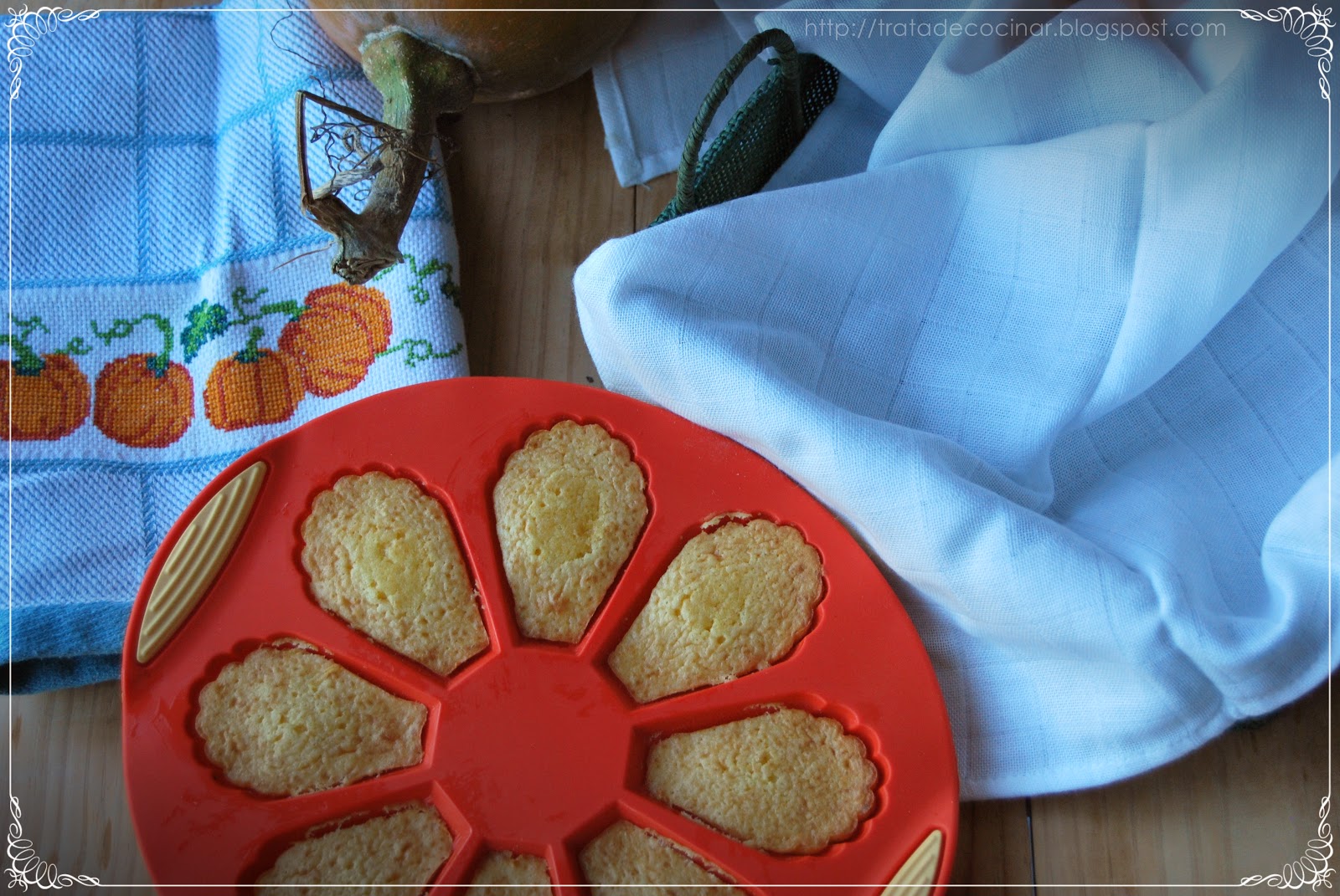 33. ME ha venido de auténtico lujo esta receta, porque tengo puré de calabaza congelado y quiero usarlo y porque desde hace dos meses tengo un molde para madeleines por estrenar ¡así que me viene perfeta tu receta!